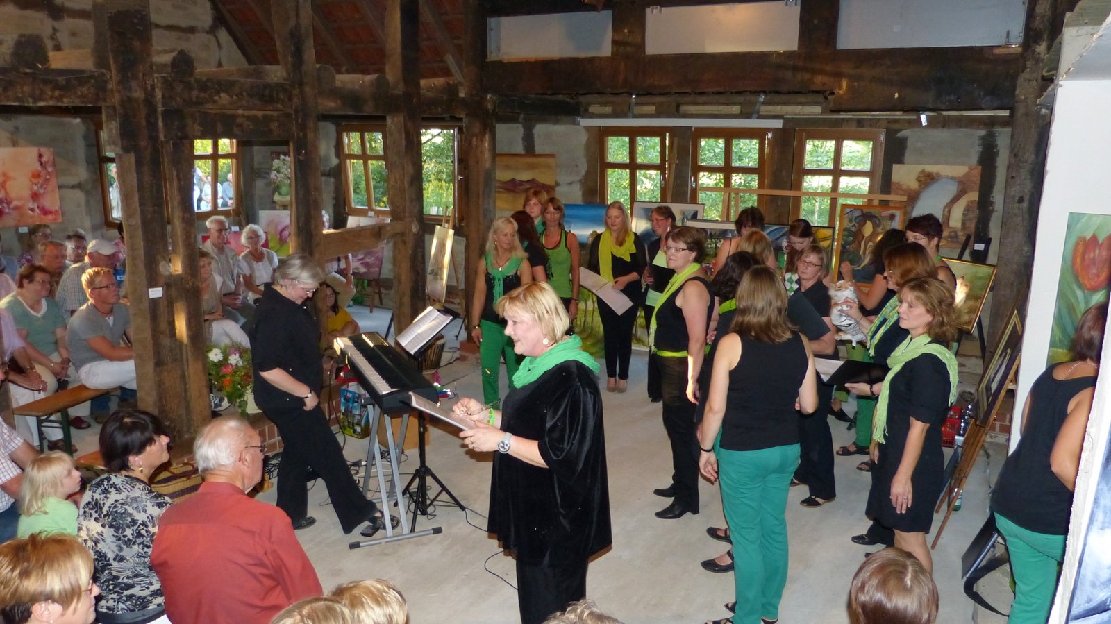 Abends beim Konzert gab es so viele Besucher, dass nicht allen einen Platz drinnen fanden. Aber bei dem herrlichen Wetter konnte man uns auch durch die geöffneten Türen und Fenster hören.