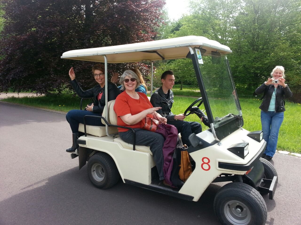 Da uns der Busfahrer am falschen Eingang herausgelassen hatte, konnten wir glücklicherweise noch eine halbe Stunde durch den schönen Park zur Festbühne gehen. Für die nicht ganz so Laufstarken gab es diesen Golfcaddy.